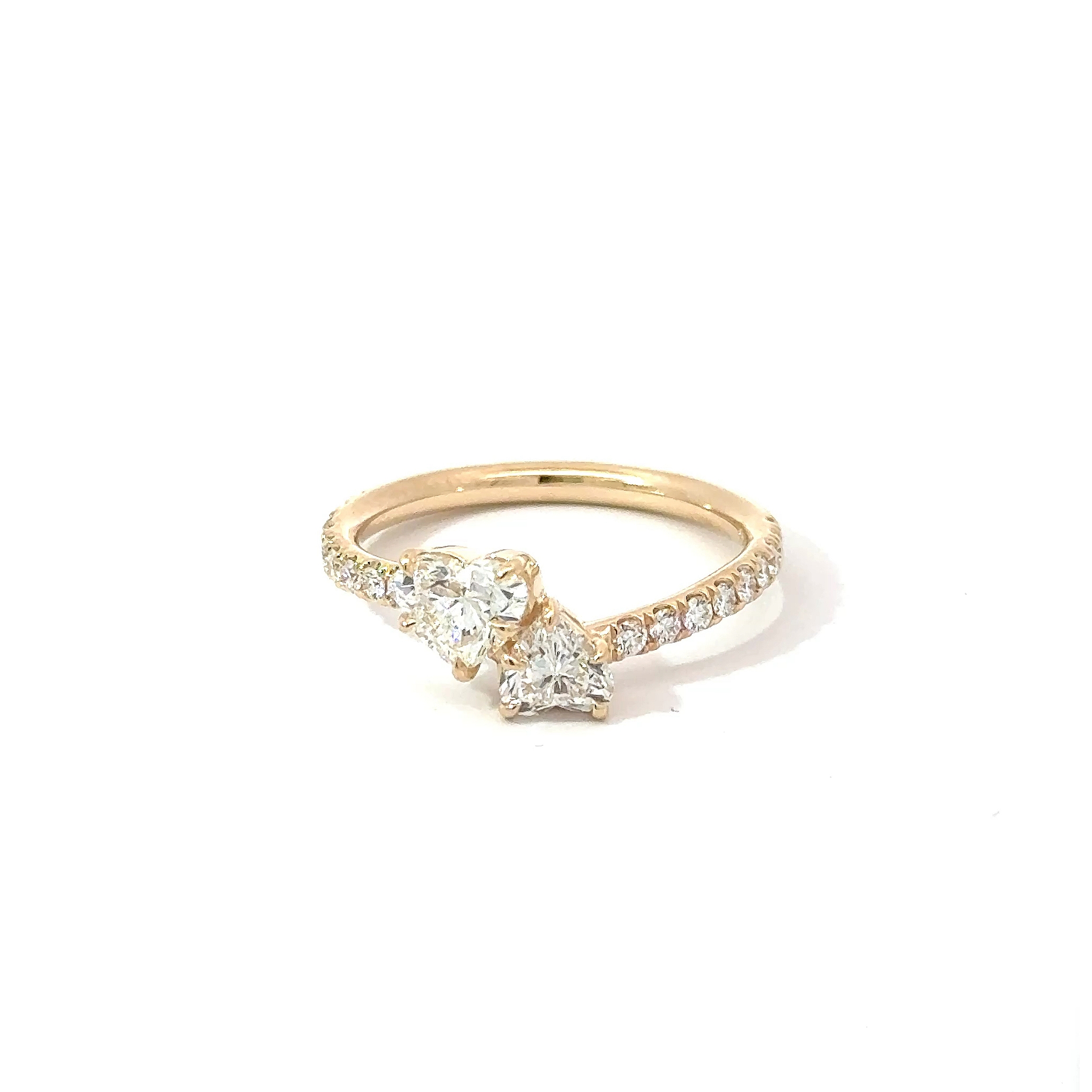 Ring with two heart diamonds
