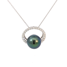 Custom pearl and diamond pendant