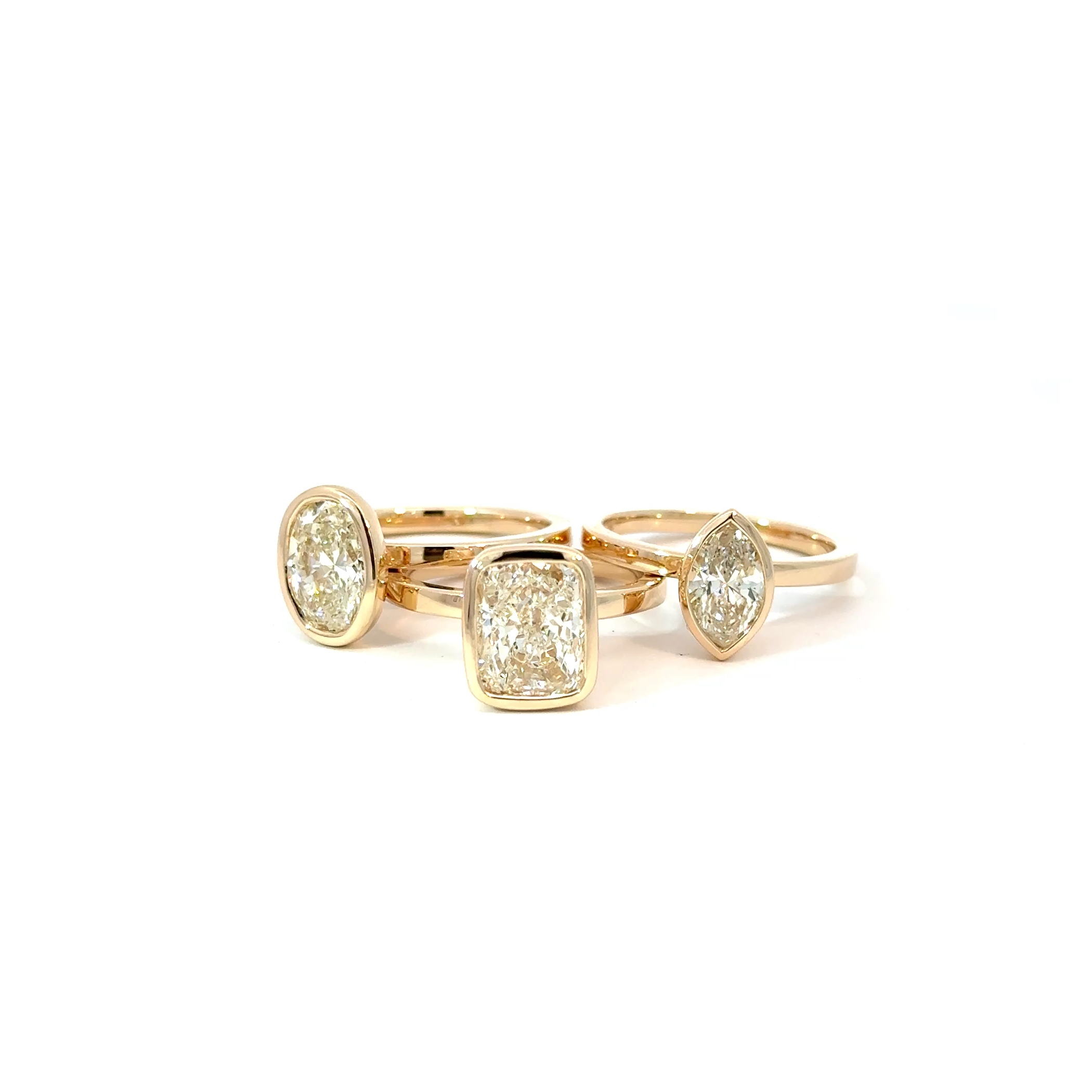 Bezel set engagement rings, yellow gold
