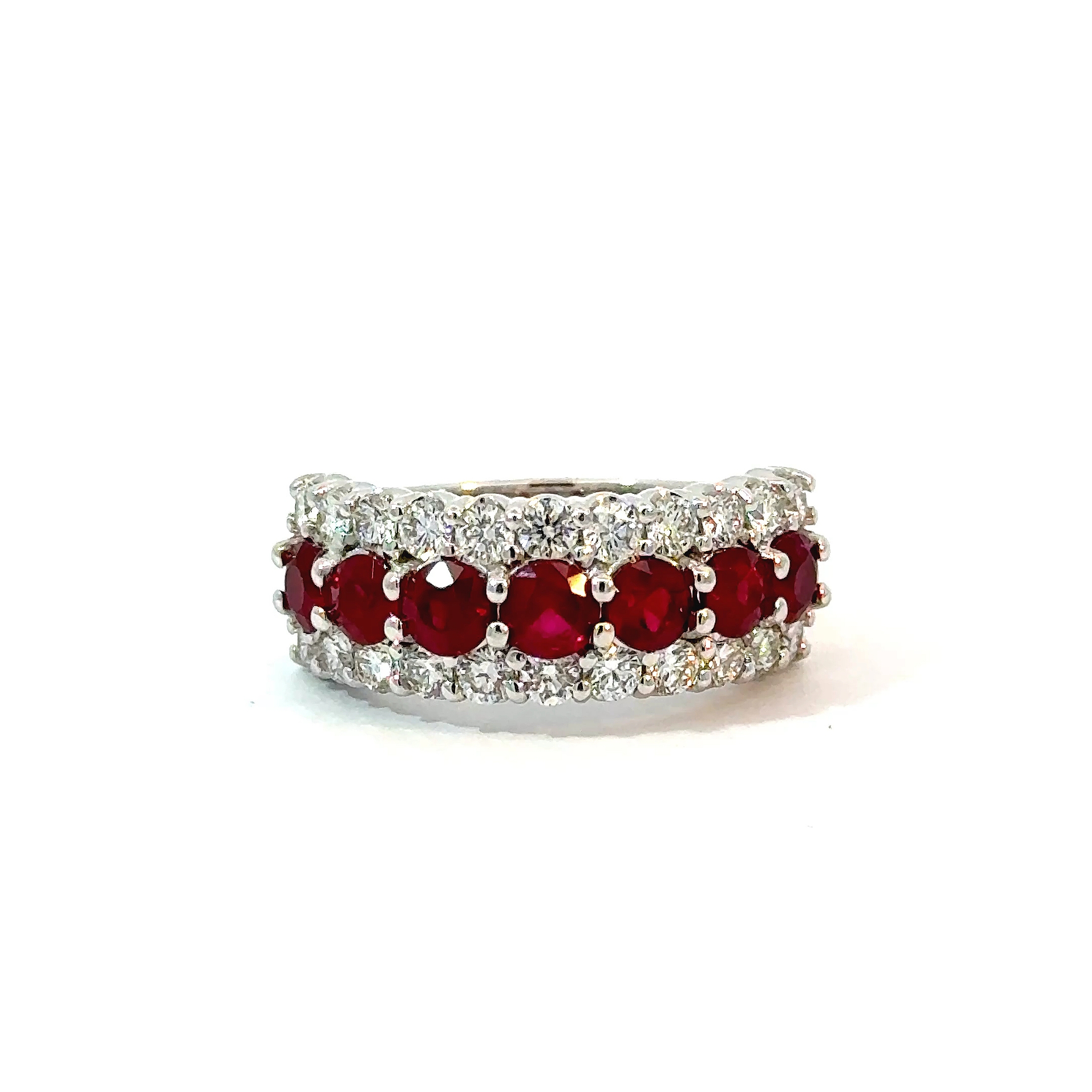 Ruby and diamond triple row ring