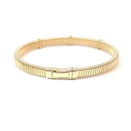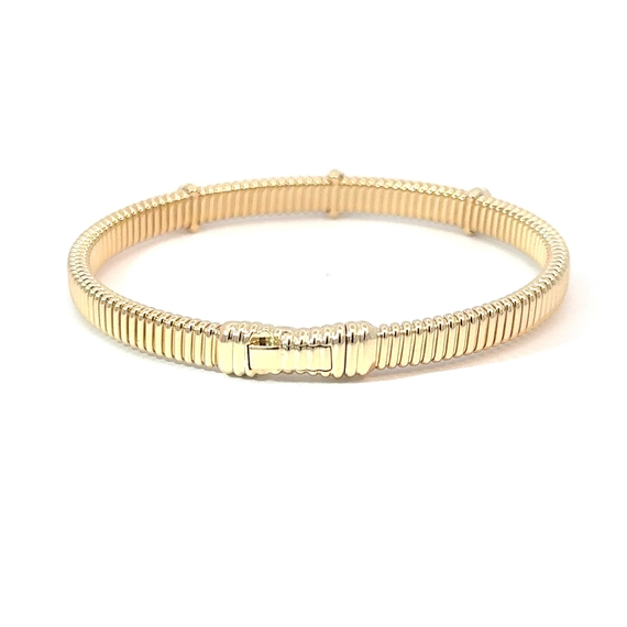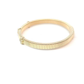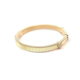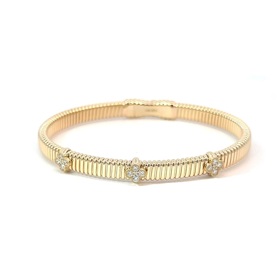 A beautiful 7mm wide gold bracelet, with 3 four leaf stations set in. The total stone weight is 0.30 ct, with 15 full cut diamonds. This is a wider version of our B274 bracelet.