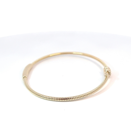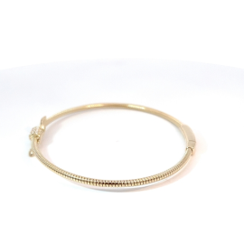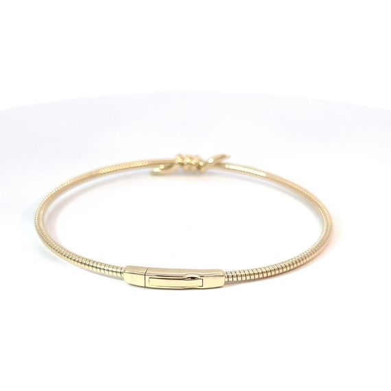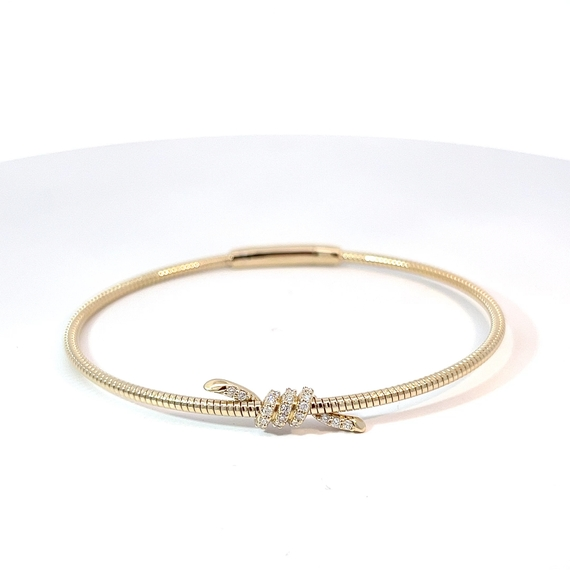 A beautiful flexible gold bangle with a knot motif. There are 23 full cut diamonds, totaling 0.15 ct.