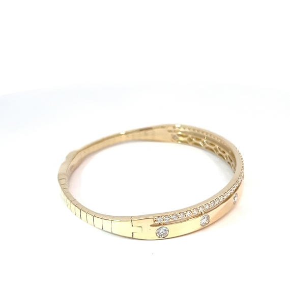 A beautiful flexible gold bangle, with a total carat weight of 0.87 ct with 33 full cut diamonds.