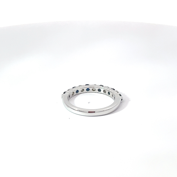 A beautiful diamond and sapphire colored band. There are 5 full cut diamonds with a total weight of 0.30 ct, and 6 round sapphires with a total weight of 0.48 ct.