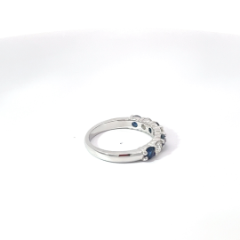 A beautiful diamond and sapphire colored band. There are 3 full cut diamonds with a total weight of 0.40 ct, and 4 round sapphires with a total weight of 0.73 ct.