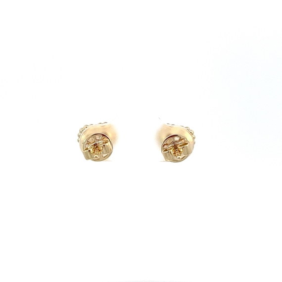 Beautiful gold flower bud diamond studs. There are 2 full cut diamonds, with a total carat weight of 0.18 ct. This is a smaller version of the HP539 studs, measuring 7mm across.