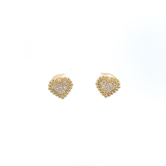 Beautiful gold heart studs, with clustered round diamonds totaling 0.15 ct.
