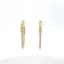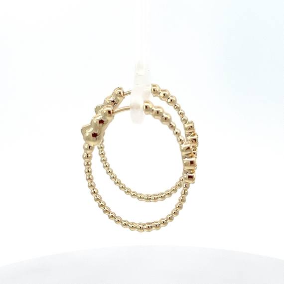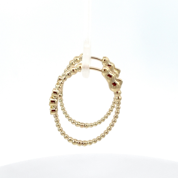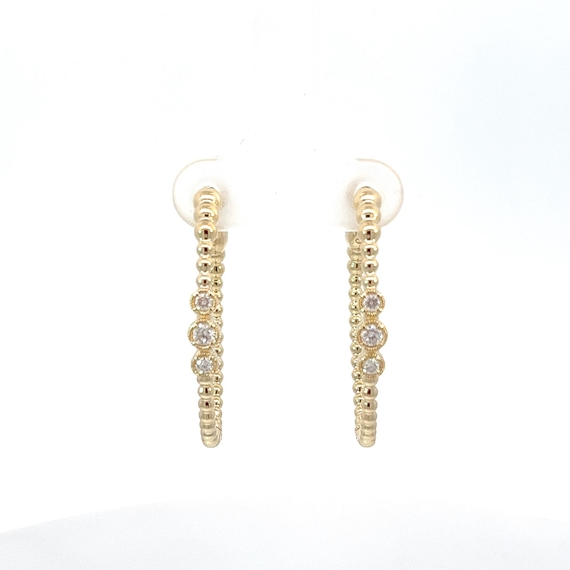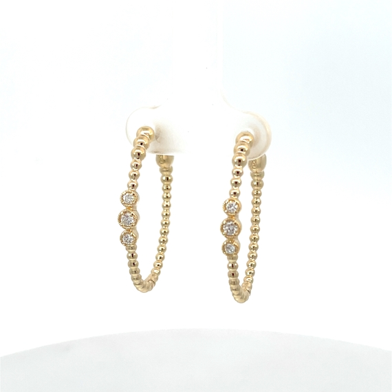 Beautiful gold hoops, with gold beads and 6 bezel set full cut diamonds, totaling 0.18 ct.