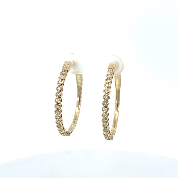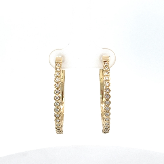 Flexible gold hoop earrings, with 34 full cut diamonds totaling 0.35 ct. This is a larger version of HP544.