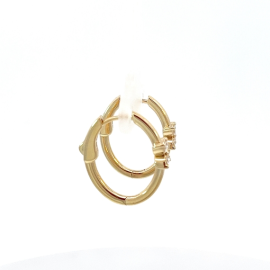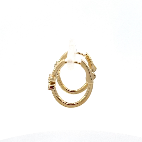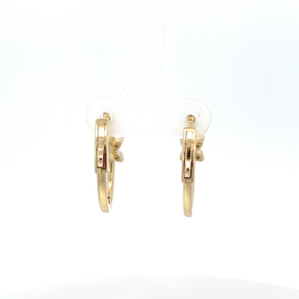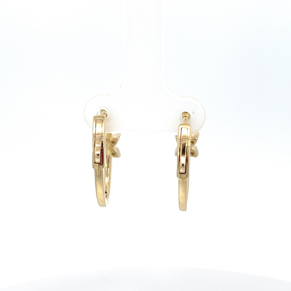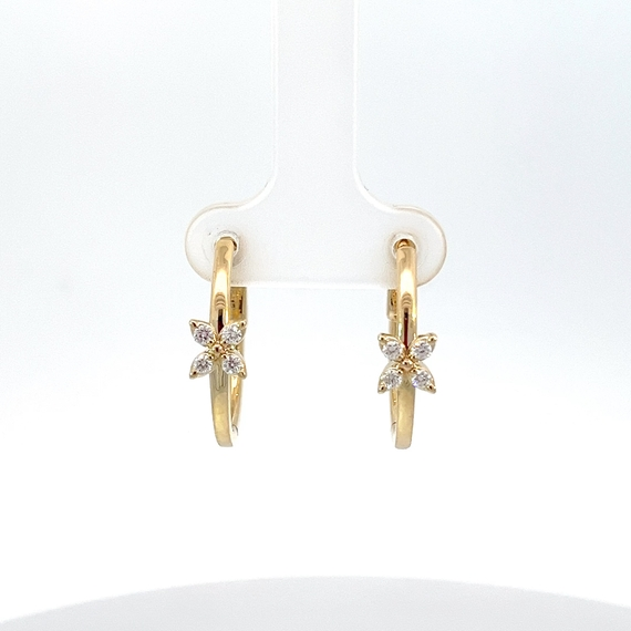 Beautiful high polish gold hoop earrings, with 8 full cut diamonds set in a butterfly motif. The diamonds total 0.17 ct.