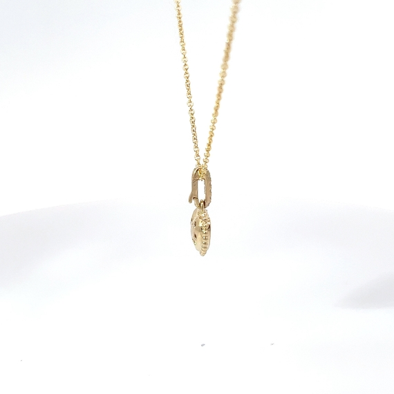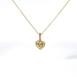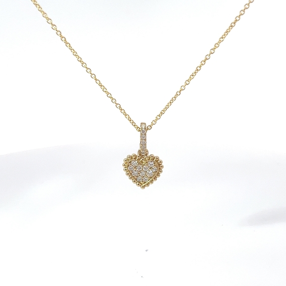 A beautiful heart shaped pendant with 17 full cut diamonds, with a total carat weight of 0.22 ct. The cost includes an 18" chain.
