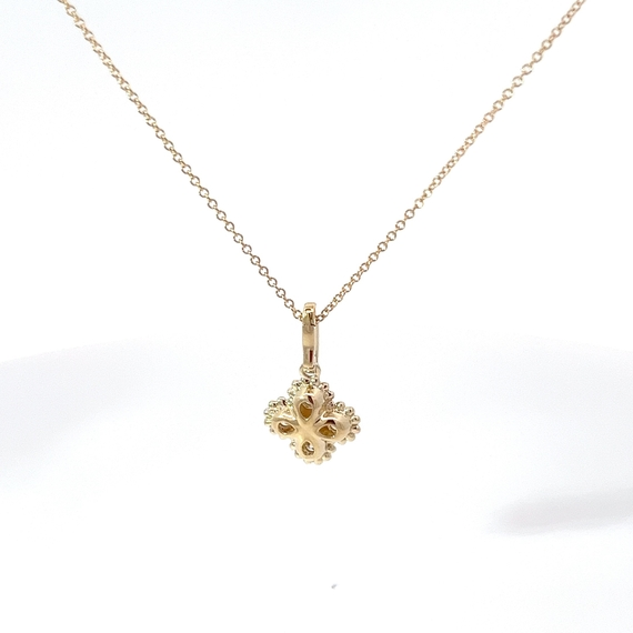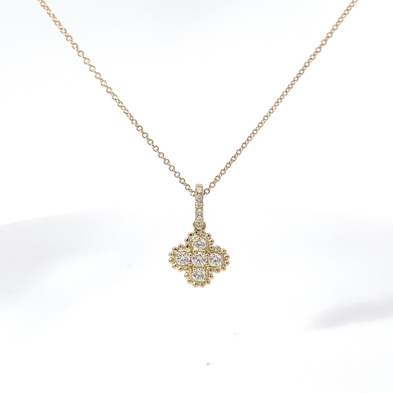 A beautiful four leaf pendant necklace, with 11 full cut diamonds with a total carat weight of 0.45 ct. The cost includes an 18 inch chain.