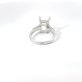 A beautiful 3 stone engagement right with two tapered baguette diamonds made to fit any size center. The video shows 2 TB 0.41 ct for a 5 cts emerald cut center. 0.25 ct to 0.40 cts total weight tapered baguette diamonds are available.
